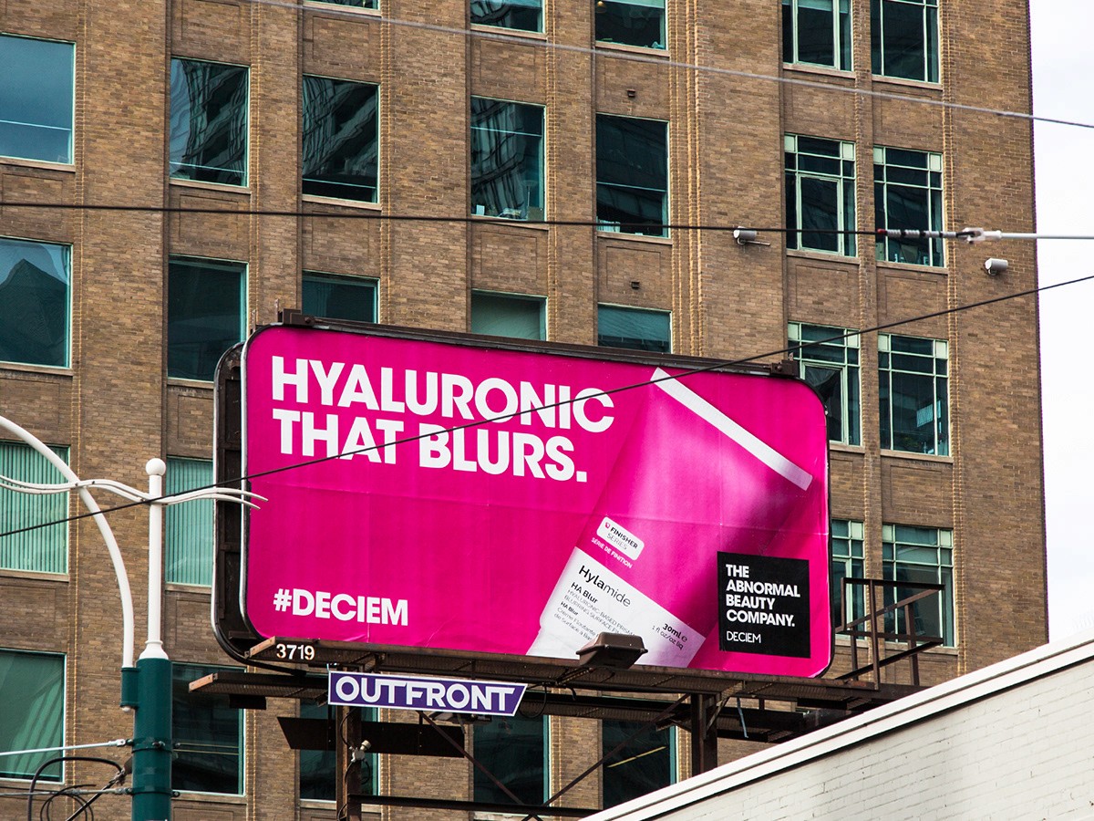 THE CHALLENGE: To launch their first retail stores in Toronto, DECIEM needed bright and loud visuals that conveyed who they are and what they bring to the table. THE SOLUTION: We created striking out-of-home billboards that showcased the products front and centre, paired with short, snappy copy that explains each product as clearly and simply as its ingredients.