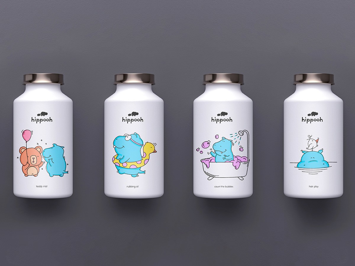 THE CHALLENGE: Hippooh, a new DECIEM baby product brand, needed a visual identity that captured the playfulness of its name, the joy of childhood, and could extend across its product lines. THE SOLUTION: I developed product and brand illustrations featuring a hippo in playful, “kids being kids” scenarios, creating visuals that both parents and children could connect with.